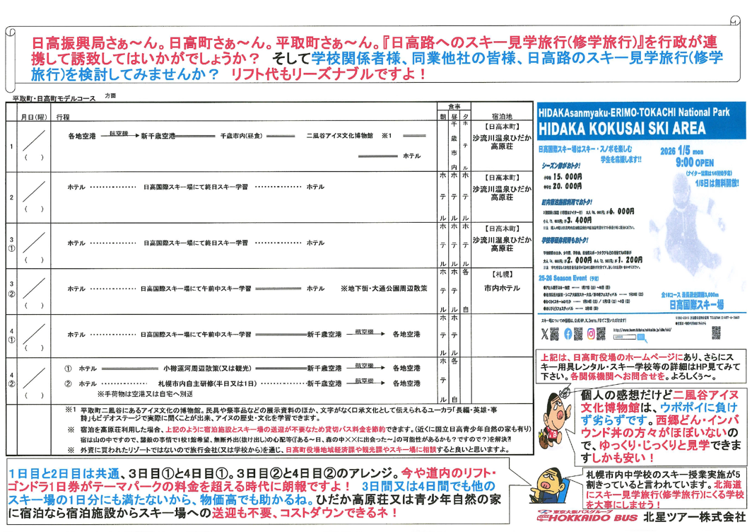 幹事様向け日帰りレクバスのモデルコースです。
